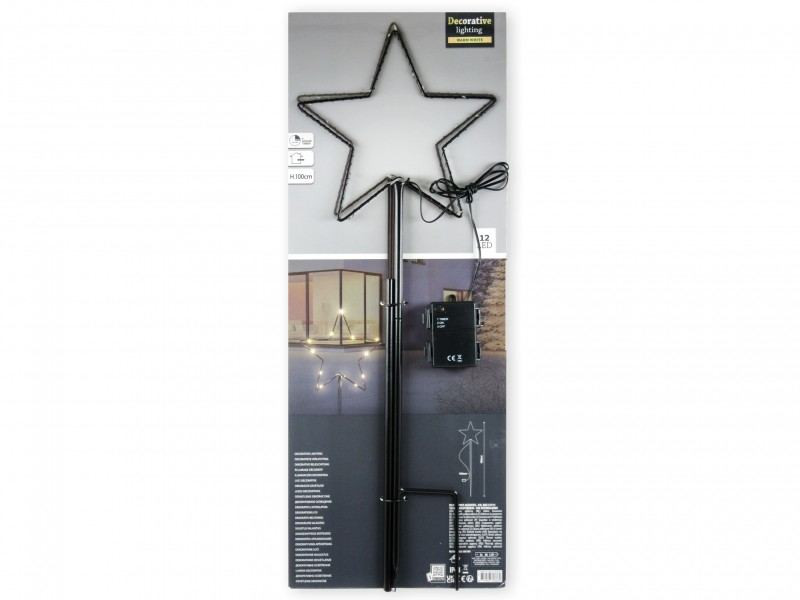 12 LEDes pálcás csillag dekoráció melegfehér kül- és beltéri 100cm