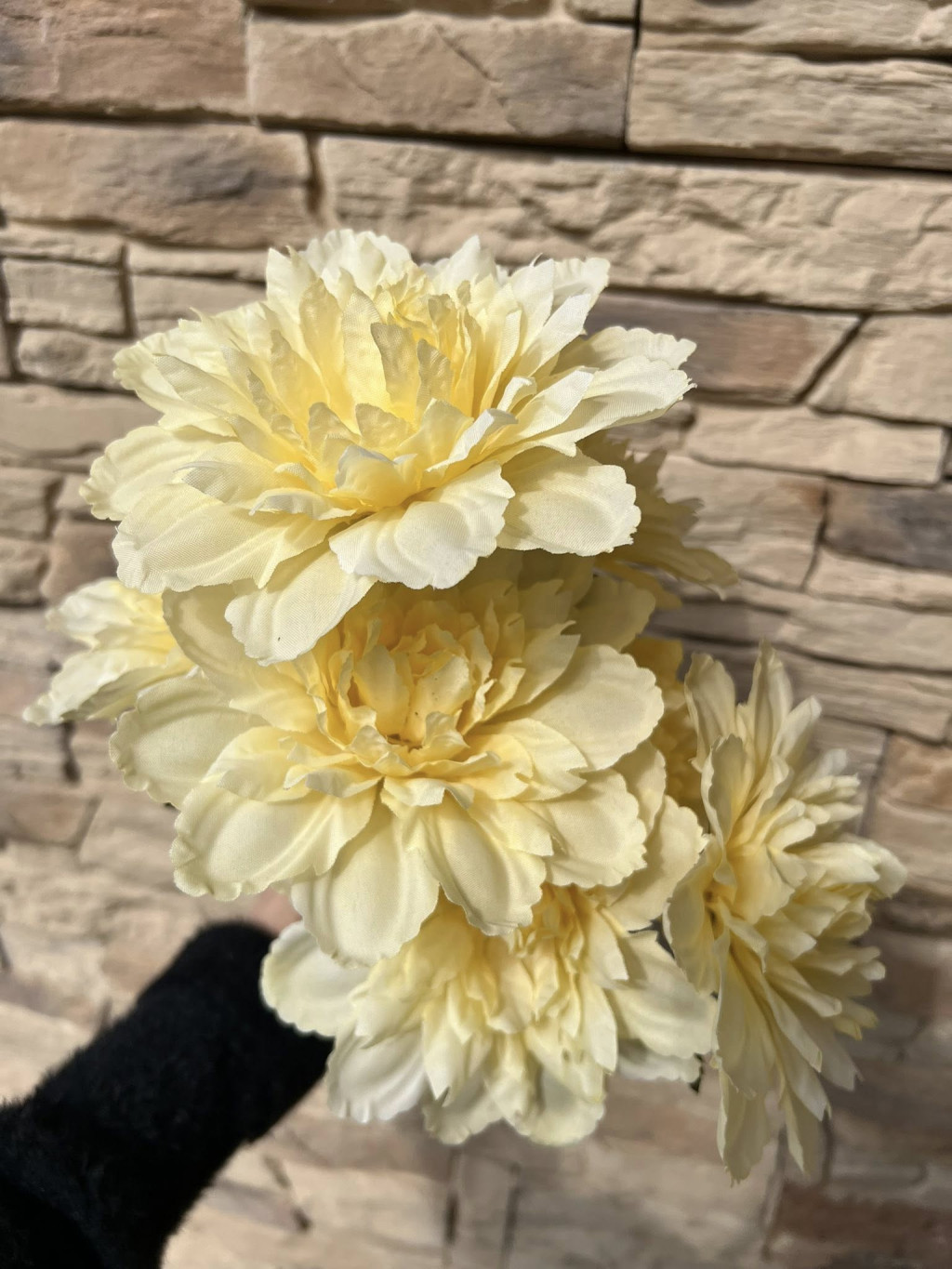 Dália művirág csokor – 45 cm, 7 virágos, halványsárga