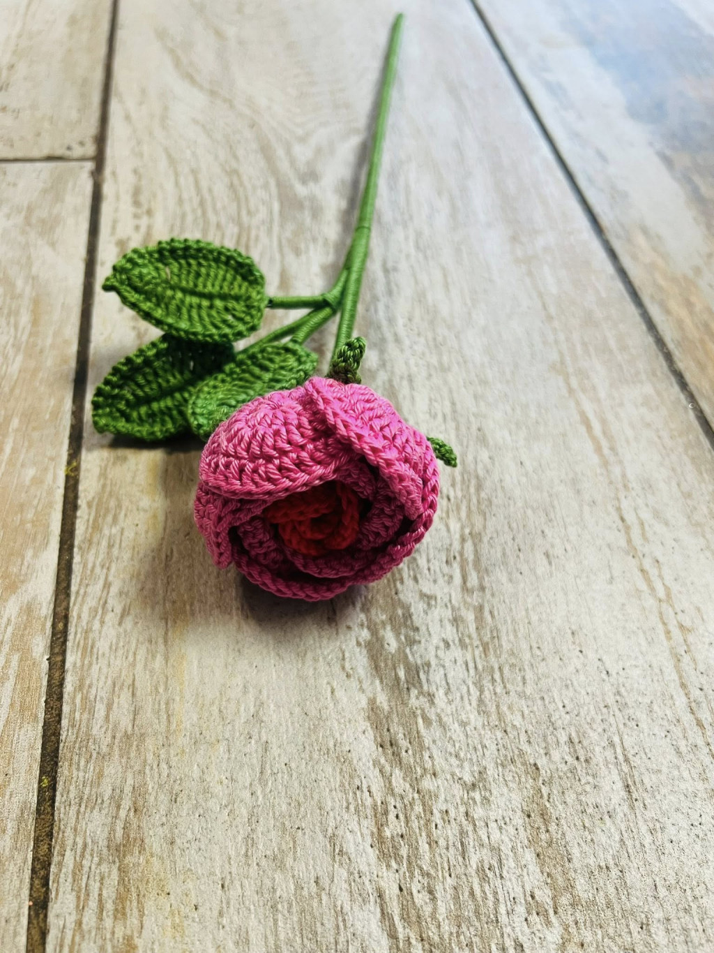 A kézzel készült horgolt gombócrózsa, más néven suki rózsa, különleges, tartós virág, amely pink színével és piros közepével igazán látványos, egyedi darab. Minden rózsa több óra aprólékos, kézi munkával készül, így valódi kézműves termék, amelyben benne van a készítő gondossága és ideje.
