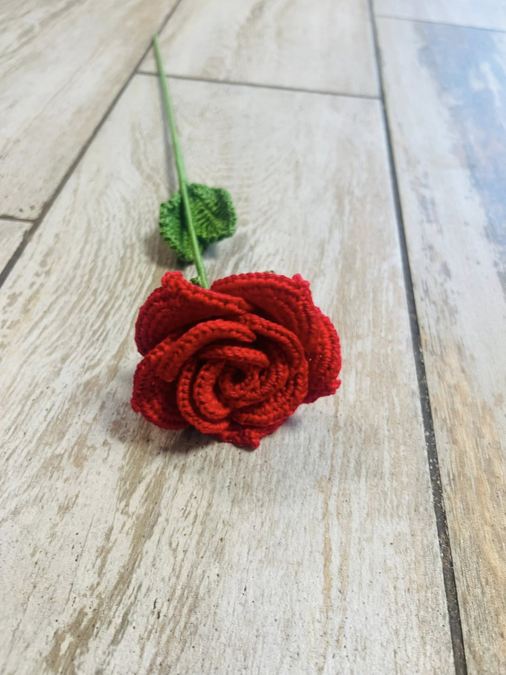 A kézzel készült horgolt piros rózsa egy igazán különleges, tartós ajándék, amely nem hervad el, mégis a virágok szépségét idézi. Minden darab több óra gondos, aprólékos munkával készül, így nincs két teljesen egyforma rózsa – valódi kézműves termék.