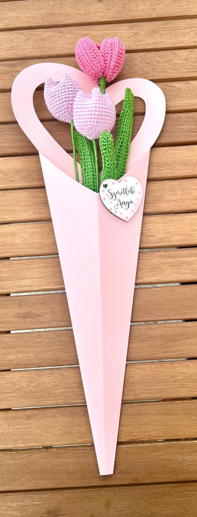 Horgolt virágos anyáknapi virágok-válaszható felirattal