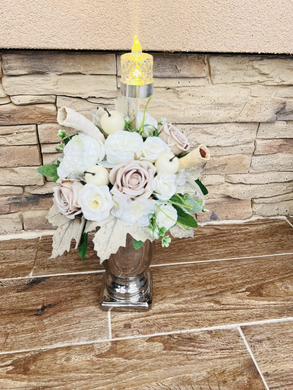 Led fényes asztaldísz pasztell színvilágban