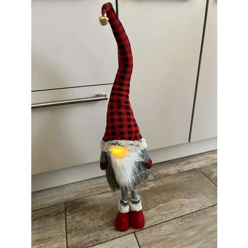 Manó LED-es álló textil 15x11x70cm piros