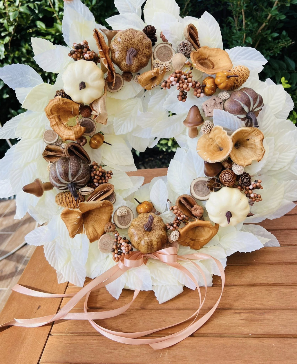 Natur színű nagyméretű őszi ajtódísz