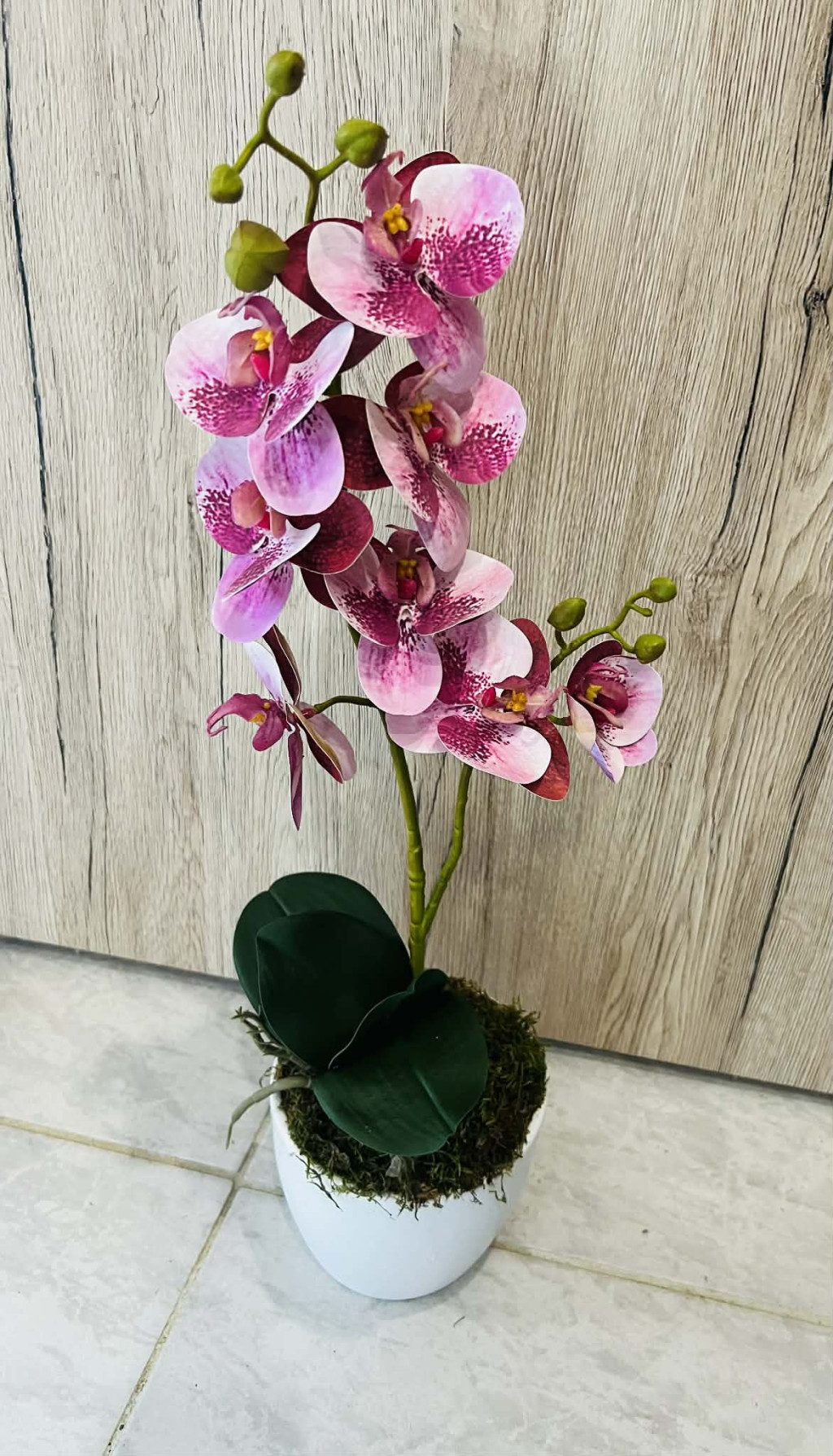 Ez az élethű mű orchidea kerámia kaspóban tökéletes választás, ha egy elegáns, mégis gondozásmentes dekorációval szeretnéd feldobni otthonodat vagy irodádat. A részletgazdag kidolgozású, valósághű orchidea virágok természetes hatást keltenek, így első pillantásra szinte megkülönböztethetetlenek az élő növénytől.