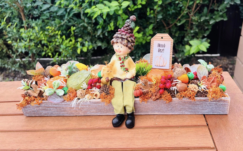Őszi asztaldísz figurával