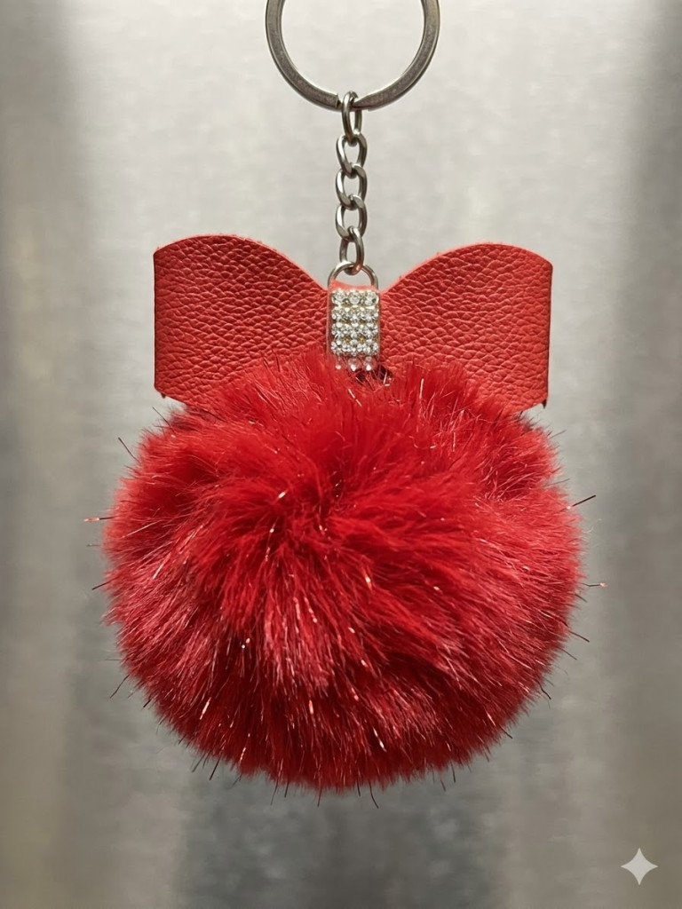 Ez a piros szőrös gombóc kulcstartó stílusos és játékos kiegészítő táskádhoz, kulcsaidhoz vagy ajándéknak. A kulcstartó puha, szőrös anyagból készült, tetején aranyos masni és csillogó strasszos díszítés található, ami igazán figyelemfelkeltővé és egyedivé teszi.
