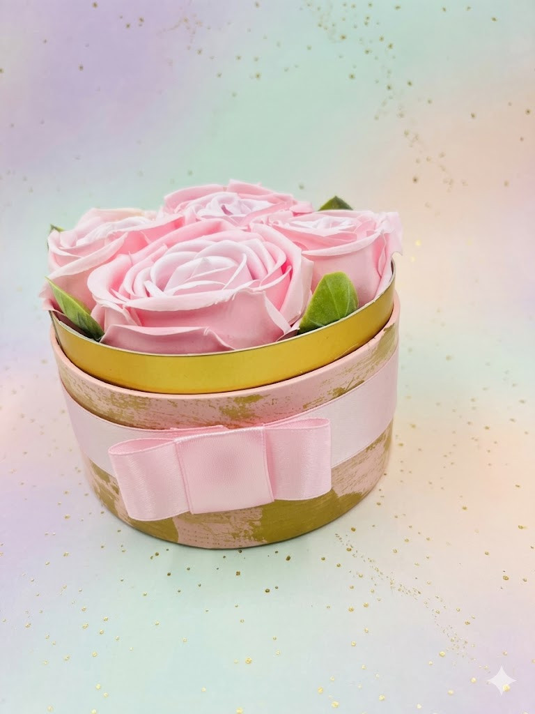 Ez az elegáns, rózsaszín és arany színvilágú virágbox tökéletes ajándék bármilyen alkalomra. A kb. 15 cm-es méretének köszönhetően kisebb, mégis látványos dekoráció, amely szép kiegészítője lehet otthonnak, irodának vagy ajándékként is megállja a helyét.