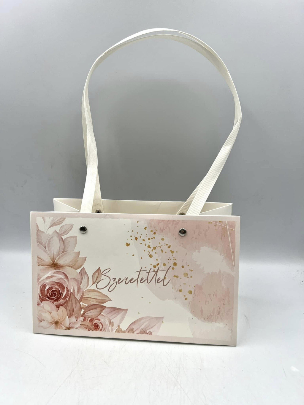 "Szeretettel" feliratos virág táska 22(h) x 10.5(sz) x 13.5(m) cm (FBL-13)