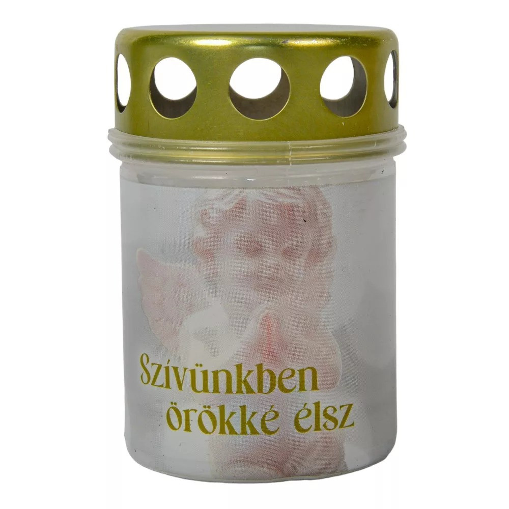 Szívünkben örökké élsz felirattal műanyag mécses fém tetővel 60gr 9cm