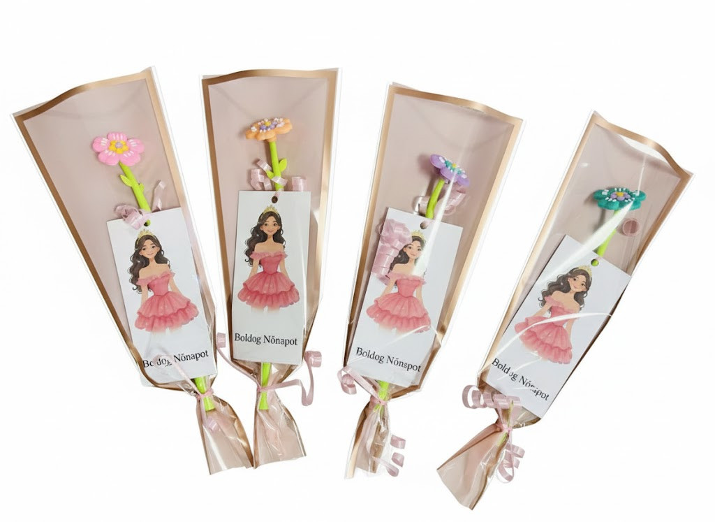 Ez a virág formájú toll elegáns díszcsomagolásban érkezik, hozzá nőnapi blanketta, ahol személyes üzenetet hagyhatsz.