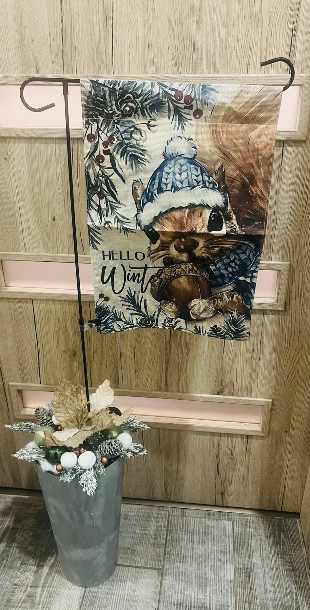 Kedves, mókusos téli kompozíció, amely tökéletes dísze lehet az ajtó melletti résznek, előtérnek vagy fedett terasznak. Meleg, hangulatos látványával igazi téli varázst visz az otthonodba.
