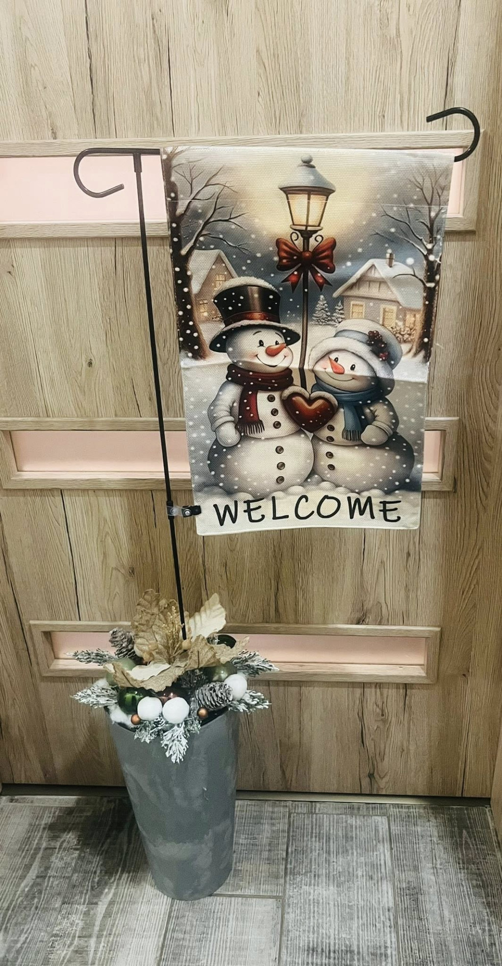 Ajtó mellé, a hangulatos fogadtatáshoz kaspós dekor -kaspó színe válaszható!  Vendégváró téli dekoráció – „Welcome”